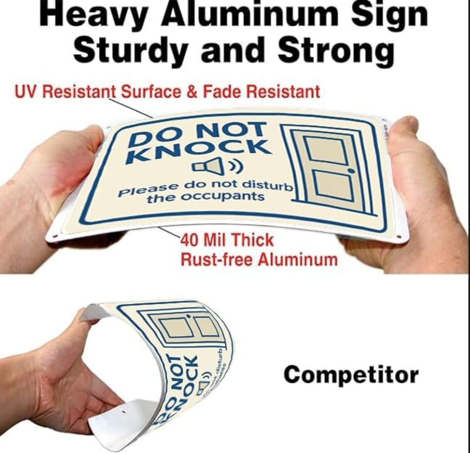 Dekvoraq Do Not Knock 9x12 Inch – Heavy Duty Rustproof Aluminum Please Do Not Disturb Sign with FREE Mounting Accessories, Waterproof UV Printed Outdoor Door Gate