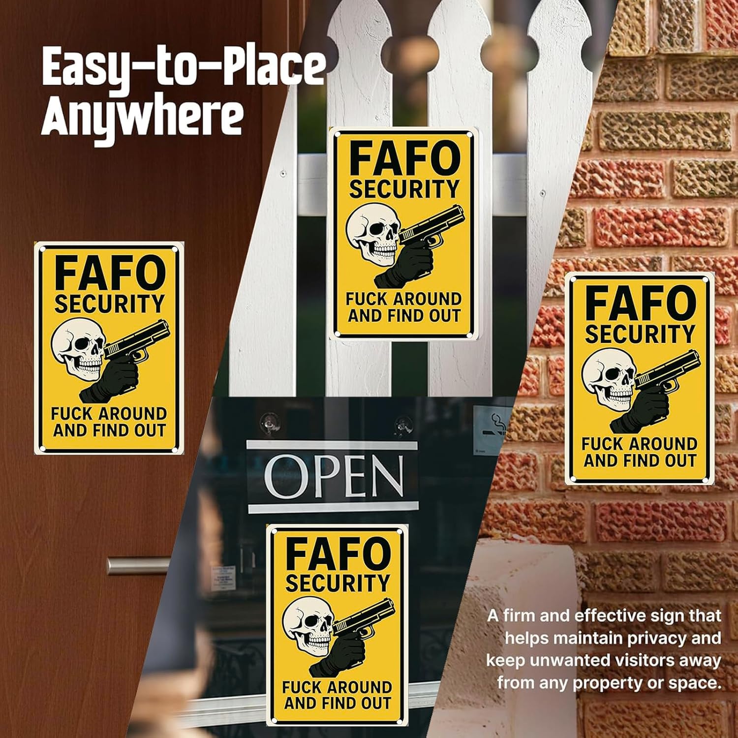 FAFO Security Sign - Fuck Around and Find Out Skull Gun Sign Rust-Free Aluminum Warning Sign UV Printed Waterproof Outdoor Sign for Wall Fence Gate & Yard with Free Screws and Rope