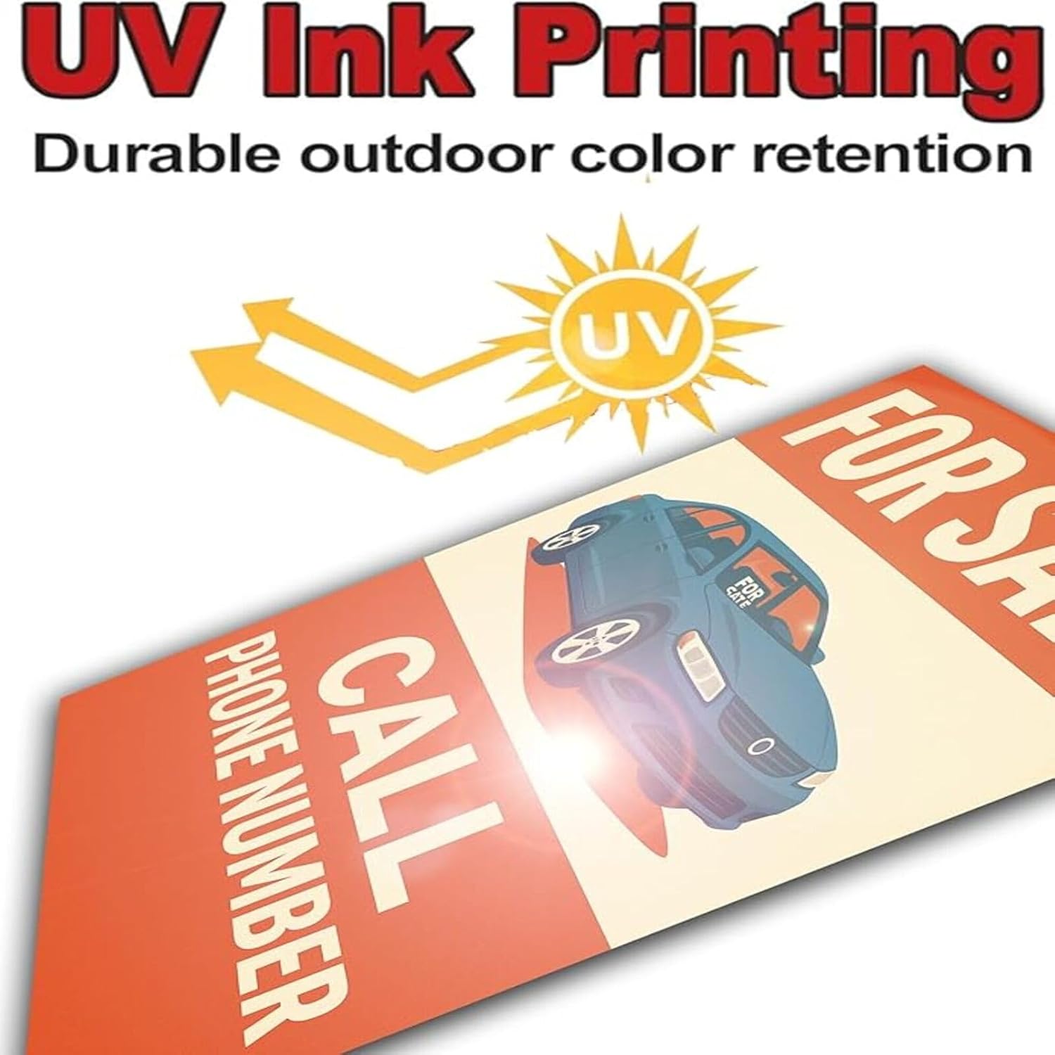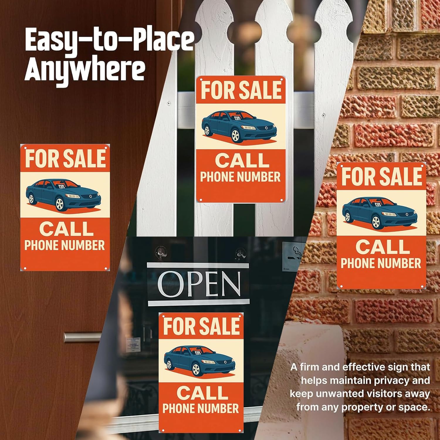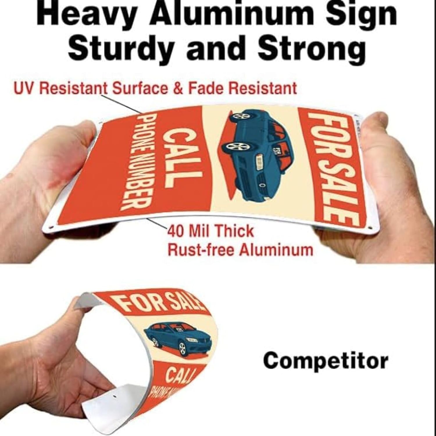 For Sale Sign Car - Rust-Free Aluminum Metal Sign UV Printed Waterproof Outdoor Yard Garage Fence Gate Notice Magnetic Compatible with Vehicle Window + Free Screws & Rope