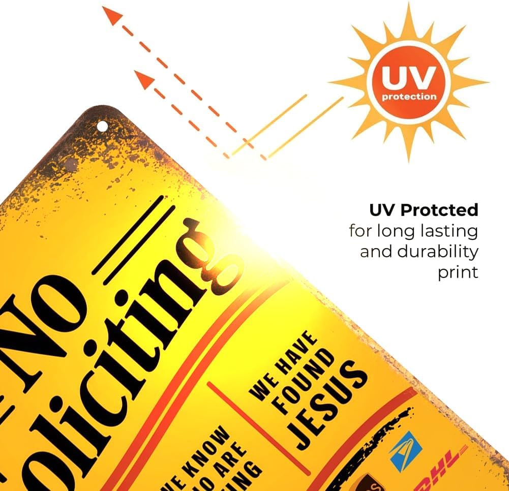 - Easy & Versatile Installation: Designed for flexibility, our no solicitation signs for house and store include pre-drilled holes, mounting screws, and a rope for hanging. Whether used as a do not solicit door sign for your porch, a no solicitor sign for your office wall, or a storefront no soliciting sign, installation is quick and secure.