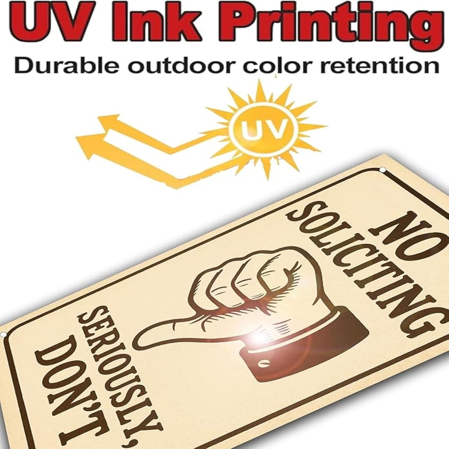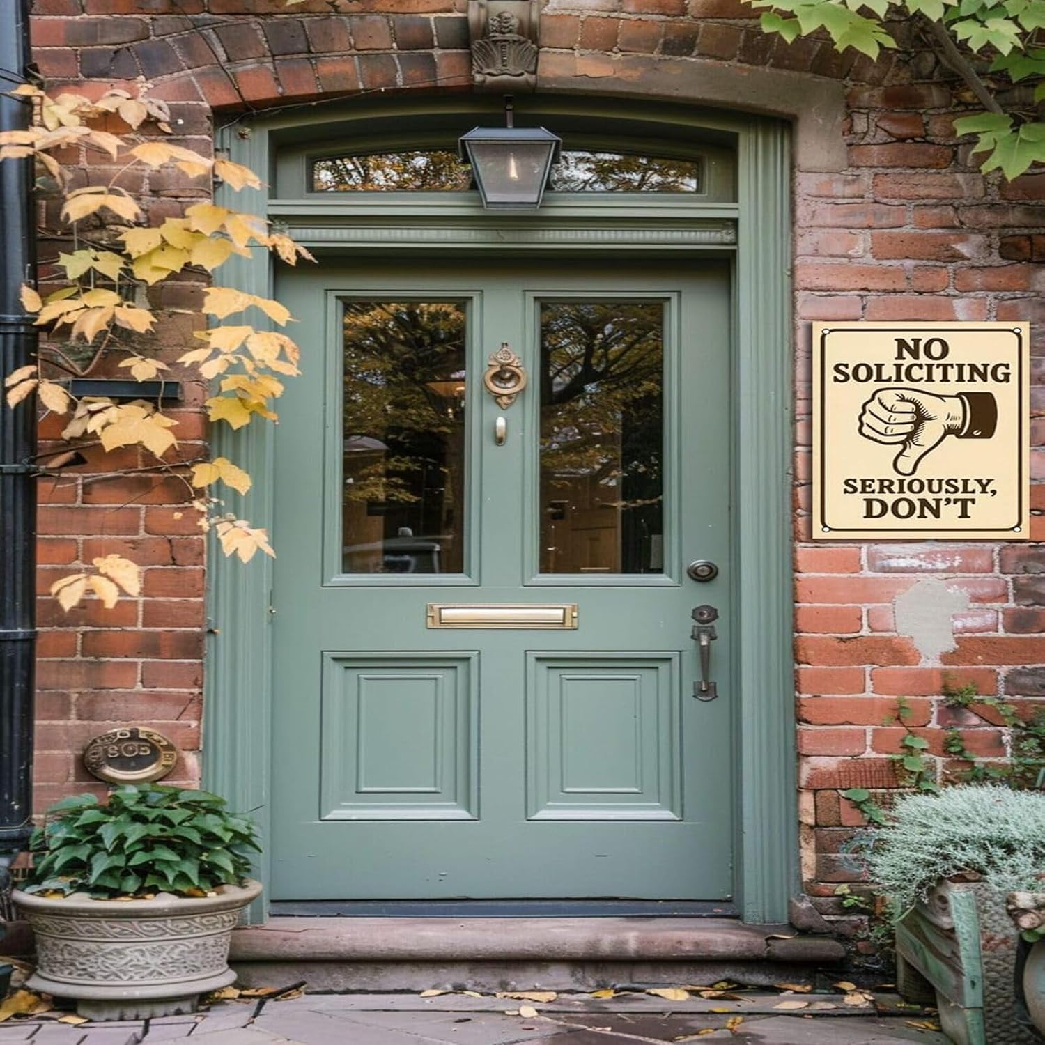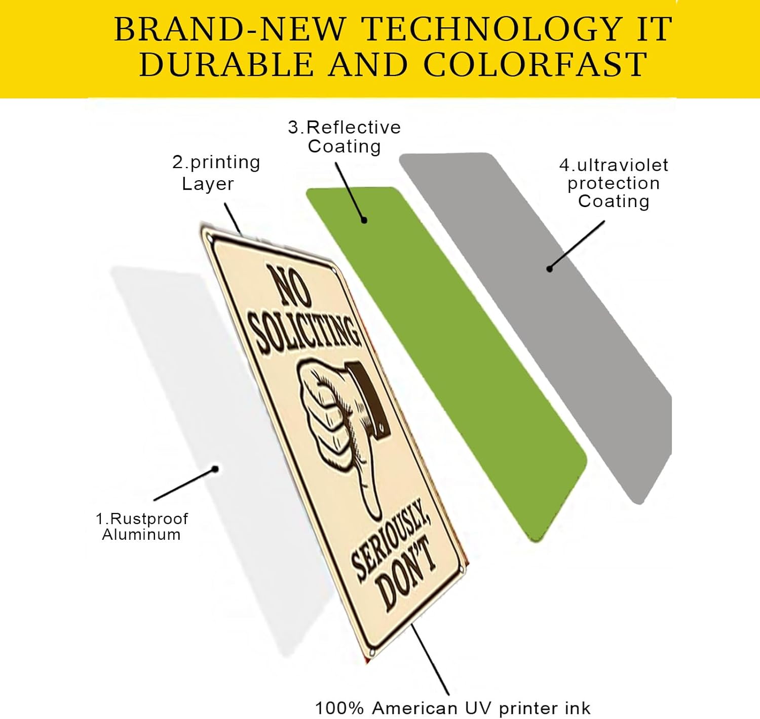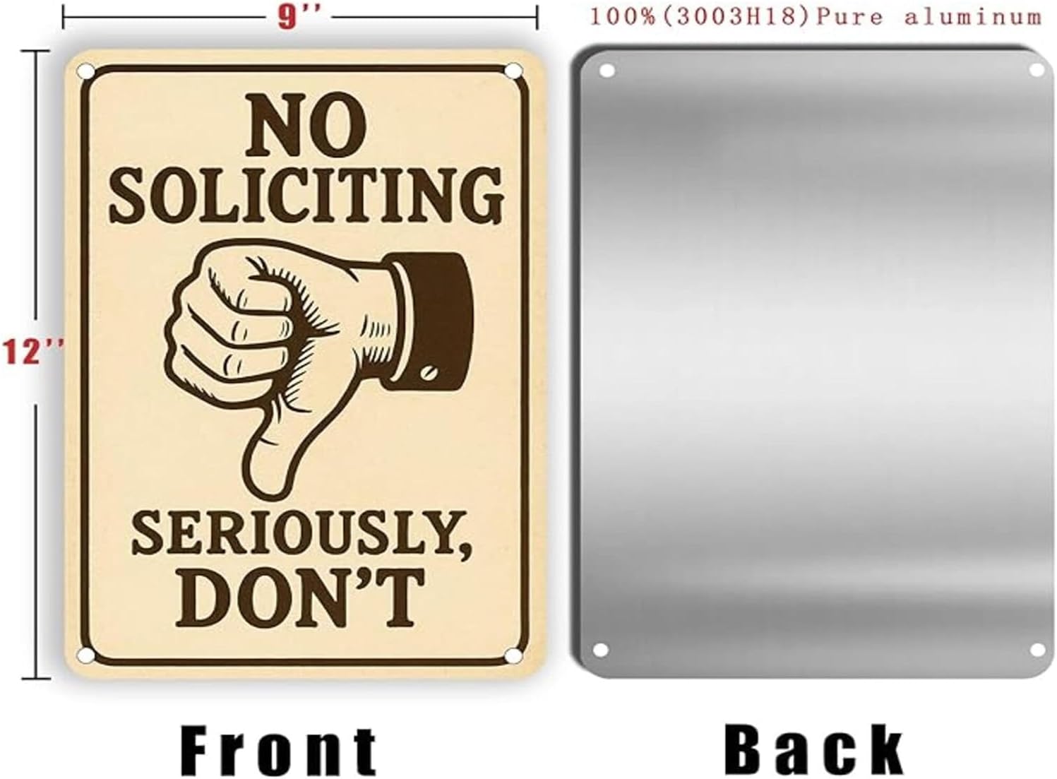 No Soliciting Sign for House Front Door – 9x12 Inch Aluminum Metal Waterproof Outdoor Sign UV Printed Durable Yard Fence Wall Decor Free Screws & Rope Included Privacy Protection Sign