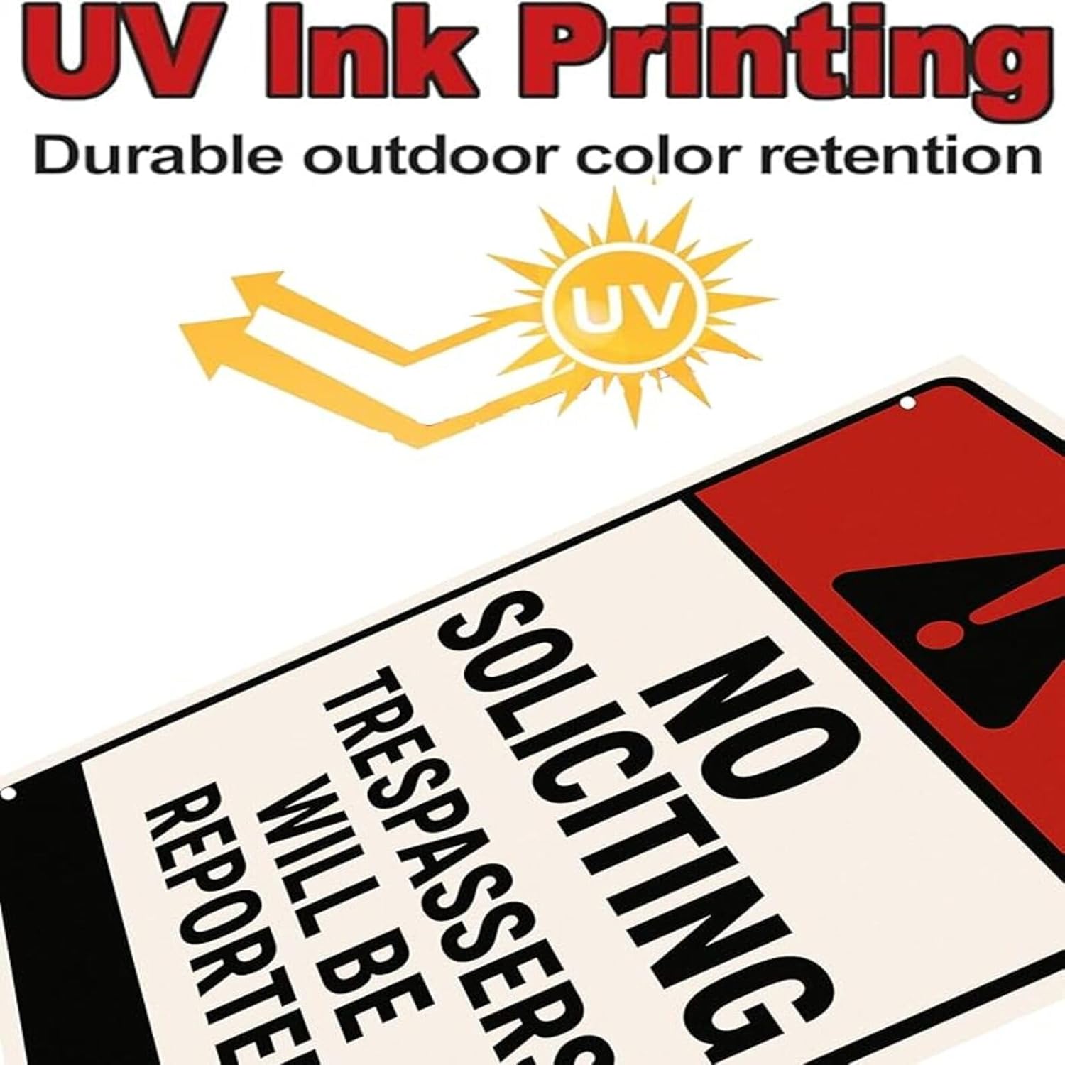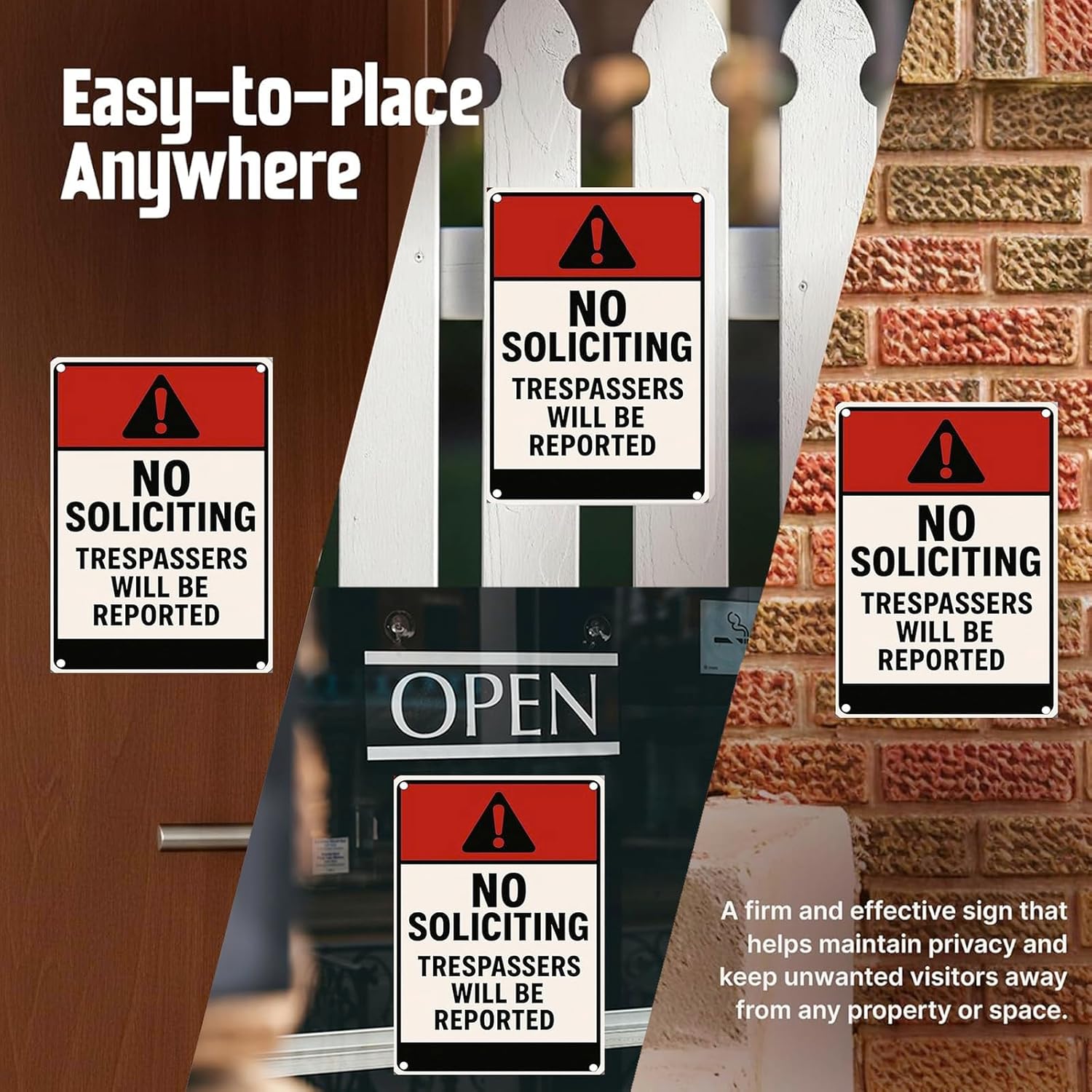 No Soliciting Sign for House Front Door Yard – 9x12 Inch Rust-Free Aluminum Metal Sign UV Printed Waterproof Outdoor Private Property Notice for Fence Gate Wall or Porch – Includes Free Screws & Rope