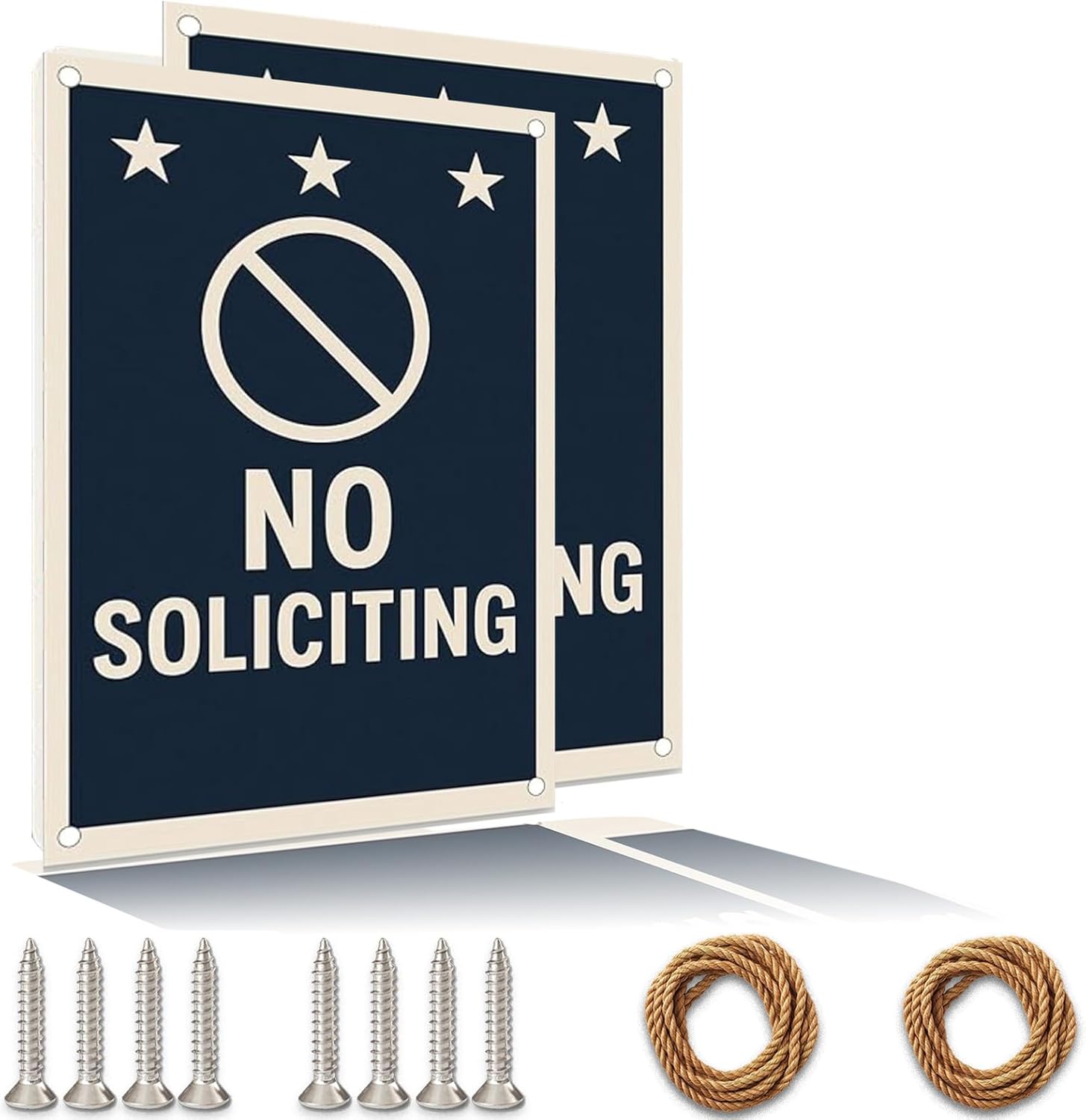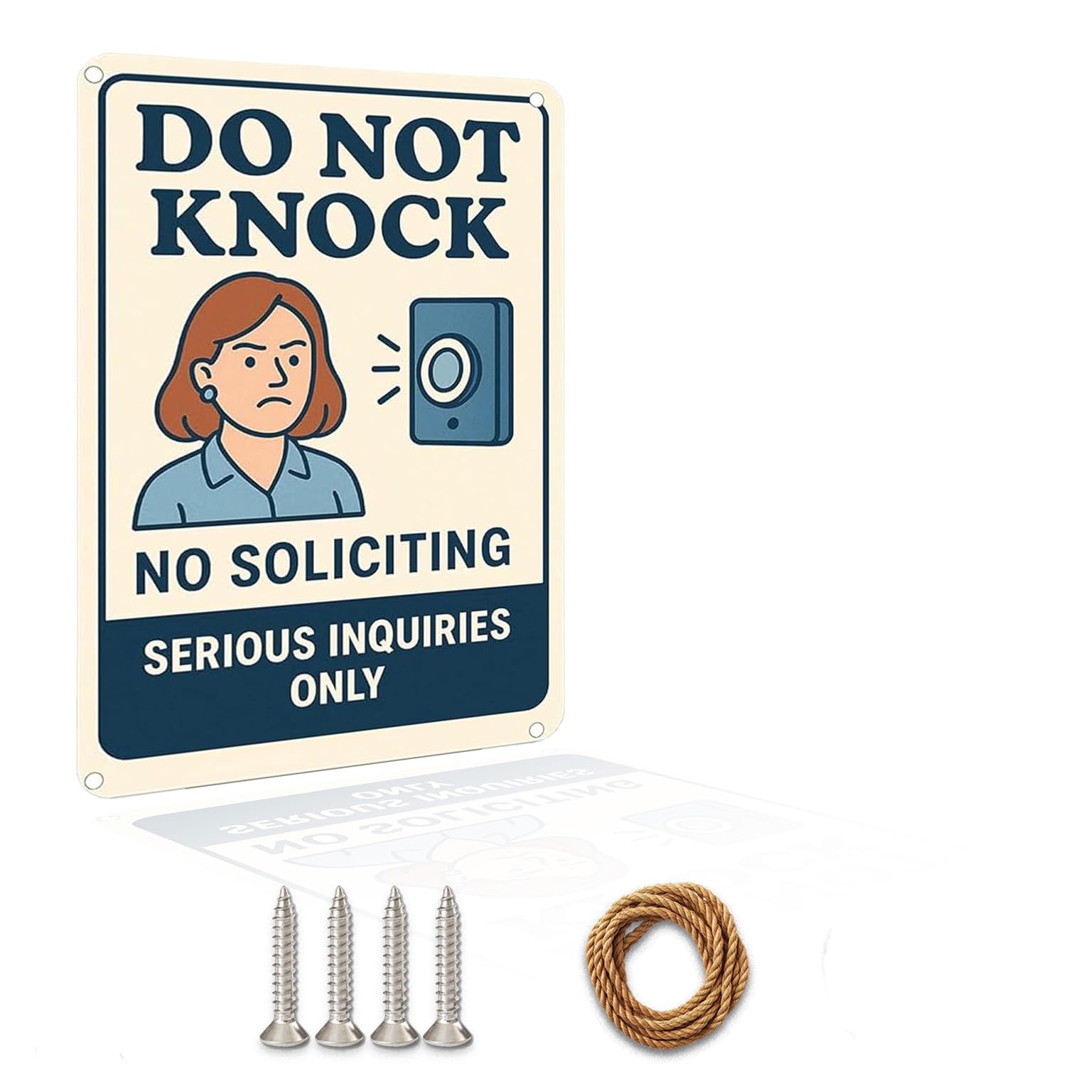 No Soliciting Sign for House Funny, 12 x 9 Inches Rust-Proof Aluminum No Soliciting Sign for Front Door, Humorous Do Not Ring Doorbell Signs, No Solicitation Signs for Home with Screws & Rope (Black)